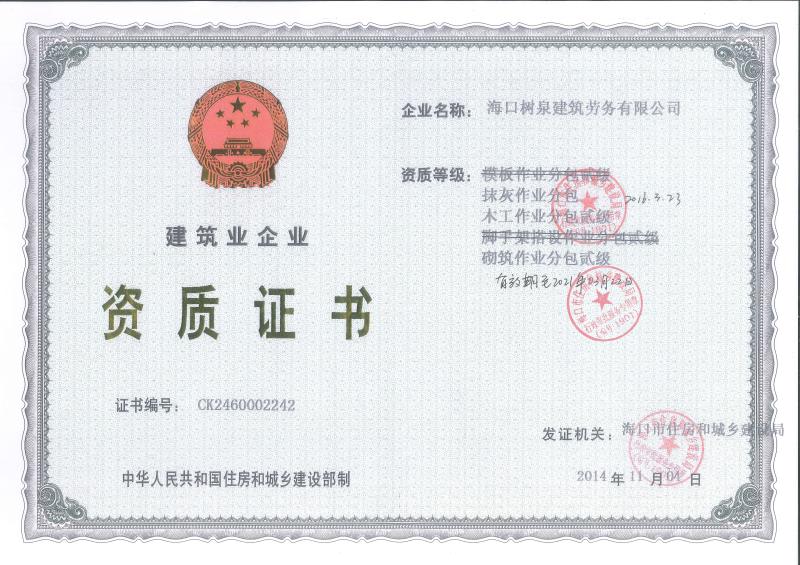 ??跇淙ㄖ趧?wù)有限公司成立于2011年,公司位于海口,其前身是一家專業(yè)建筑施工隊(duì),自2004年即開始在海南從事建筑勞務(wù)施工。自成立至今,公司已經(jīng)擁有一支科學(xué)管理、質(zhì)量過硬、能打硬仗,搶工期的專業(yè)隊(duì)伍。能獨(dú)立承擔(dān)大中型工業(yè)與民用建筑 、室內(nèi)外裝修、各類機(jī)電設(shè)備安裝工程。代表工程有海口濱海華庭、三亞時(shí)代海岸T01/02/04/05棟高層、合肥東?;▓@二期、陵水富力灣B區(qū)高層、三亞金中海(酒店)、瓊海大印經(jīng)典花園、??诃h(huán)球海景大酒店(四星級(jí)酒店,在建中)、陵水珍珠大廈(五星酒店)、??谌f達(dá)廣場(chǎng)、美蘭機(jī)場(chǎng)二期。